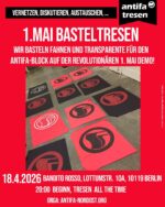 Schluss mit der bedingungslosen moralischen Rückendeckung, den Rüstungslieferungen und finanziellen Hilfen Deutschlands, am Massenmord in Gaza! Für einen sofortigen Waffenstillstand, den Austausch der Gefangenen / die Freilassung aller Geiseln und das Ende von Besatzung & Apartheid! Als Antifaschist:innen gilt unsere Solidarität allen betroffenen Zivilist:innen und fortschrittlichen Kräften in Israel / Palästina! Für ein gleichberechtigtes Zusammenleben in Frieden!